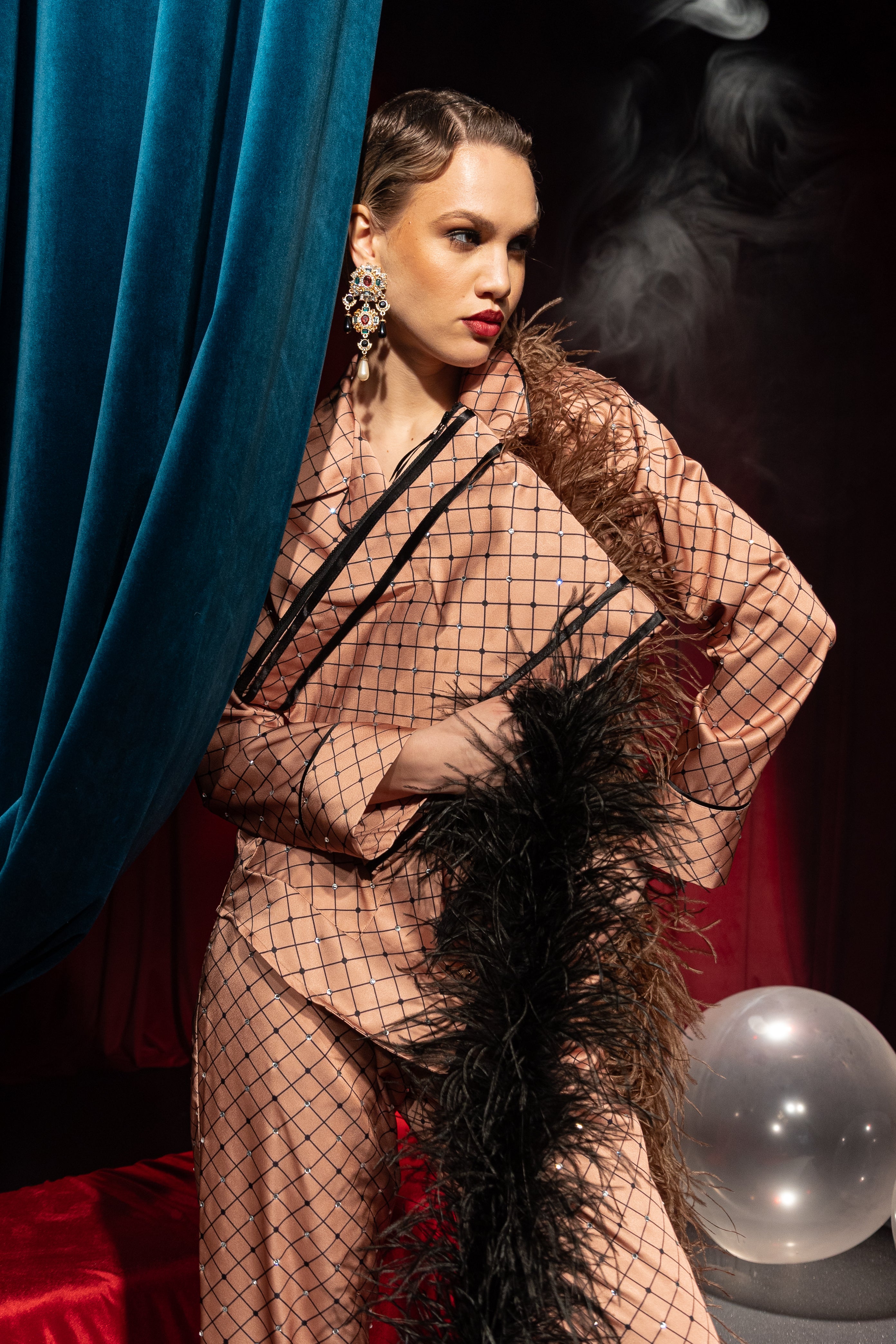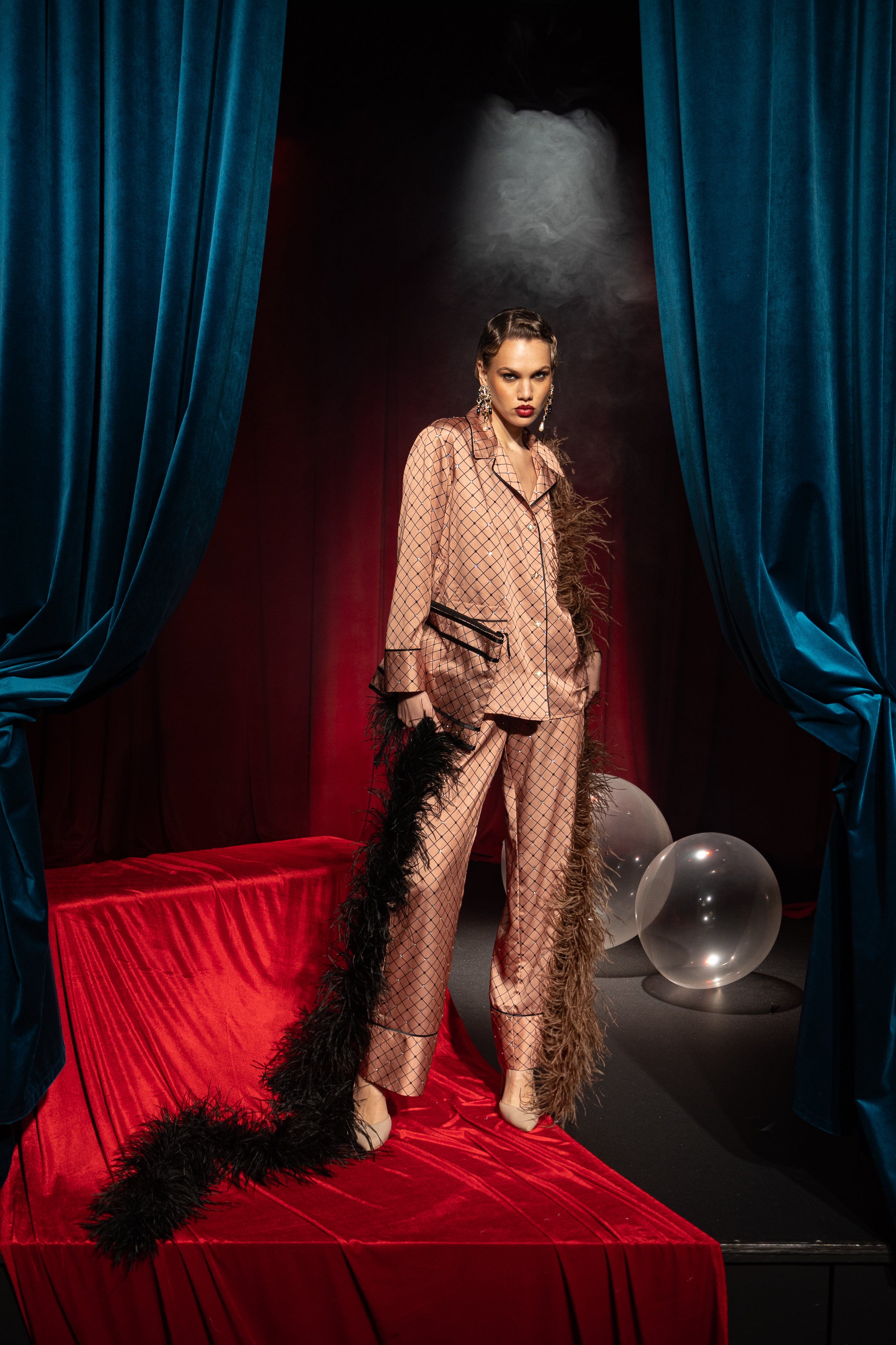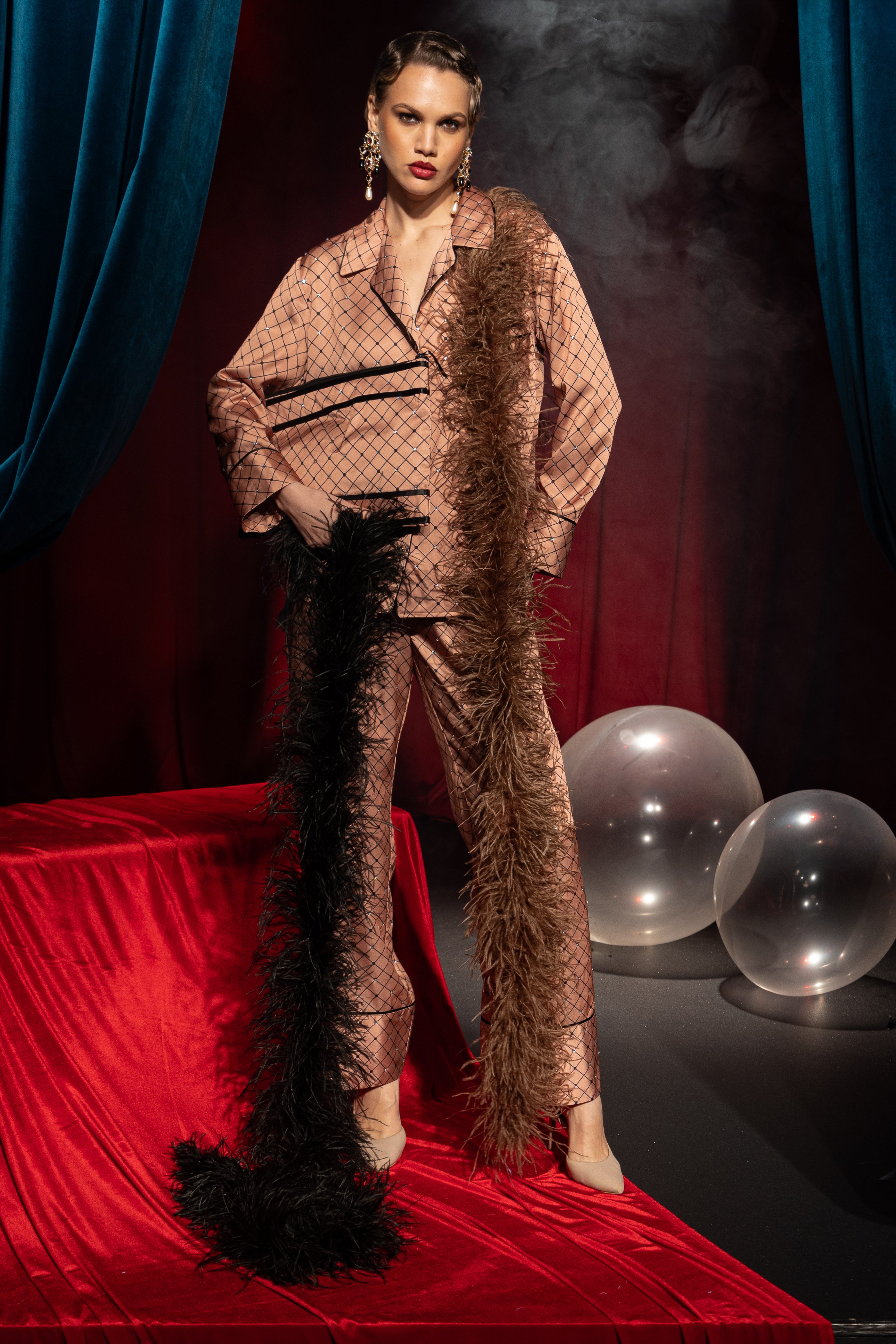 Indulge the world of refined luxury with the Diamond Pajama Set, an exclusive design for Maison Riche that redefines loungewear with an elegant, shimmering touch. Crafted for those who appreciate sophistication, comfort, and subtle glamour, this set is adorned with delicate crystals, making every movement a statement of elegance.