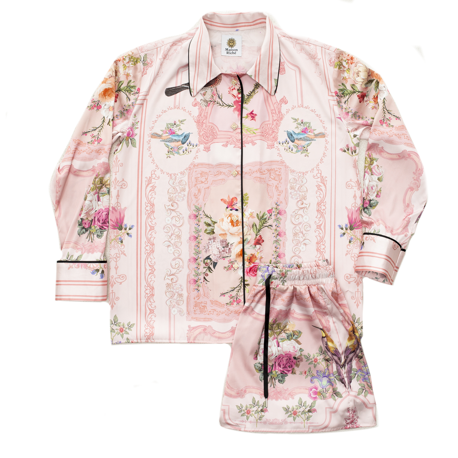 Unwind in style with Maison Riché's Blooming Print Pajama Set. Order now and experience the perfect blend of luxury and comfort for your bedtime routine.
